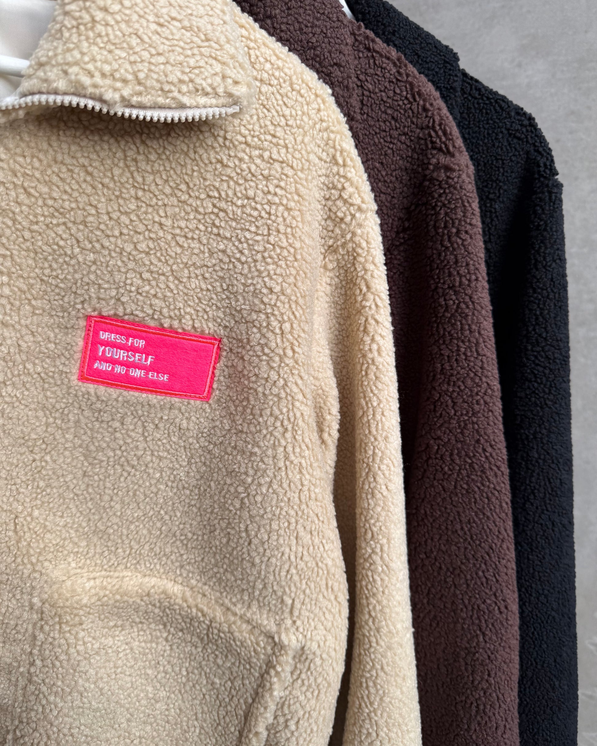 Teddy-Jacke mit Neon-Patch – warm, weich und modern